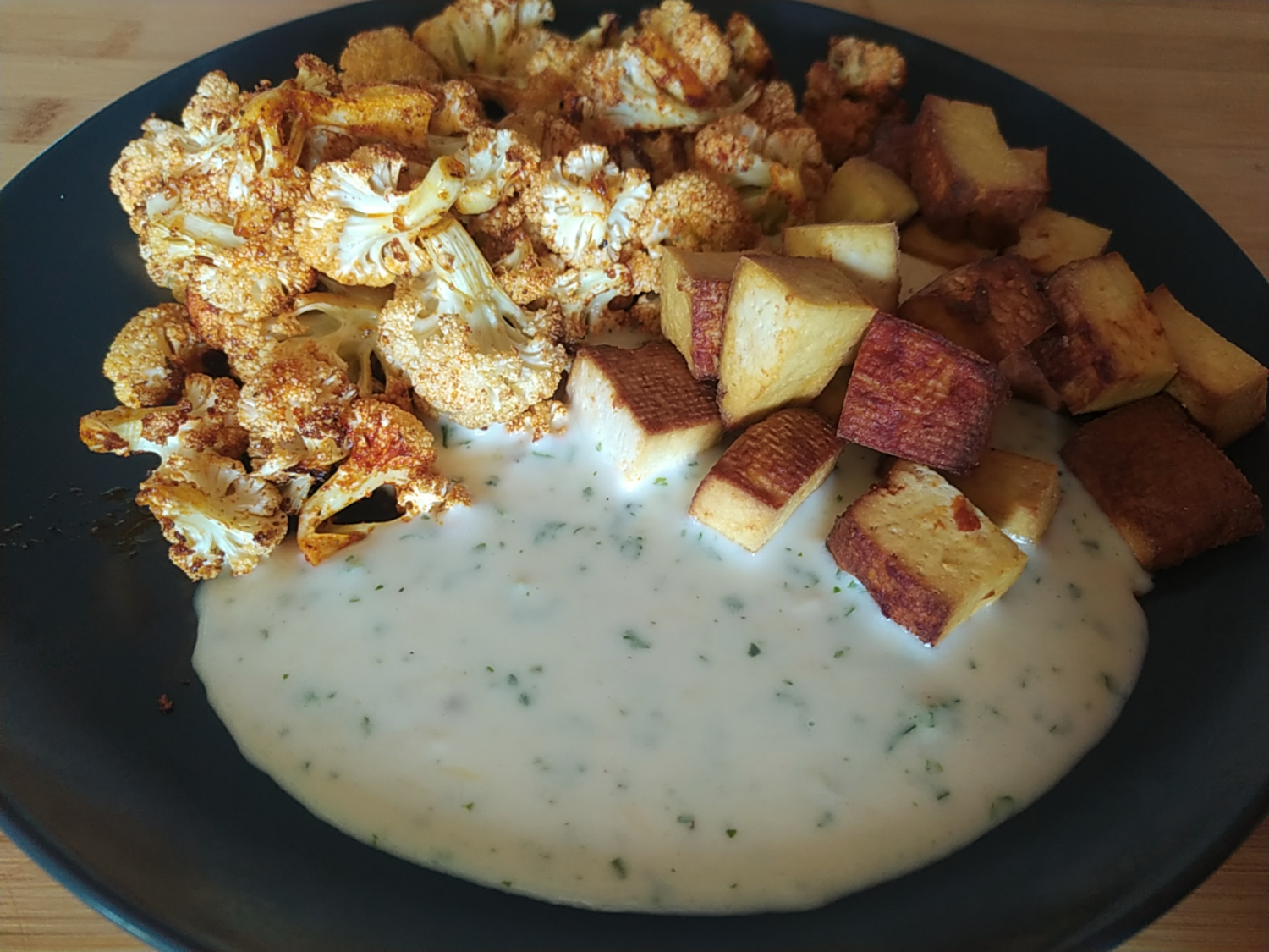Dort, bublanina, pečený květák s tofu, chai